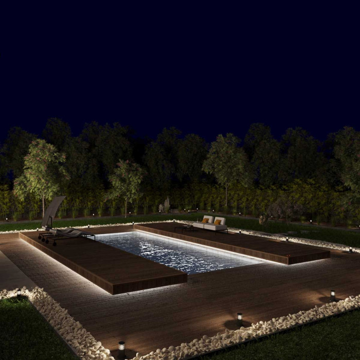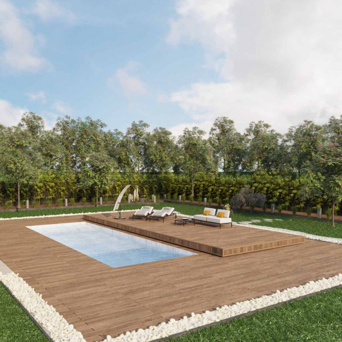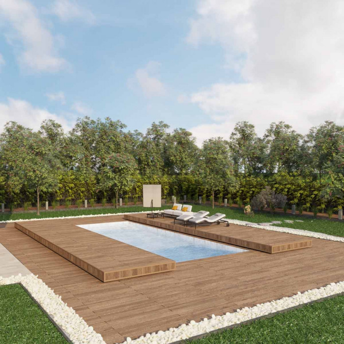 Автоматична зсувна тераса Aguard Slide Mirror Y — це ідеальний варіант для покриття стаціонарних басейнів будь-якої форми завширшки до 8 м і завдовжки до 10 м. Конструкція складається з двох рухомих частин, виготовлених із міцної оцинкованої сталі із покриттям з терасової дошки. Завдяки теплоізоляції та герметичності, накриття зберігає тепло та перешкоджає випаровуванню води, також захищає басейн від попадання сміття. Тераса оснащена системою безпеки, яка зупиняє рух накриття за наявності перешкоди. Можливо дистанційне управління терасою з вашого смартфона, через спеціальний додаток. Ціна вказана без урахування вартості обшивки зсувної тераси.