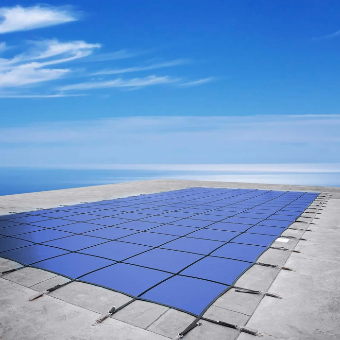 Безкаркасне батутне накриття Aquaviva виконане з екструдованої поліпропіленової сітки з високотехнологічним плетінням, що забезпечує високу міцність, водопроникність, захист від забруднювачів та УФ-випромінювання. Матеріал має підвищену міцність та стійкість до хімії для басейну.