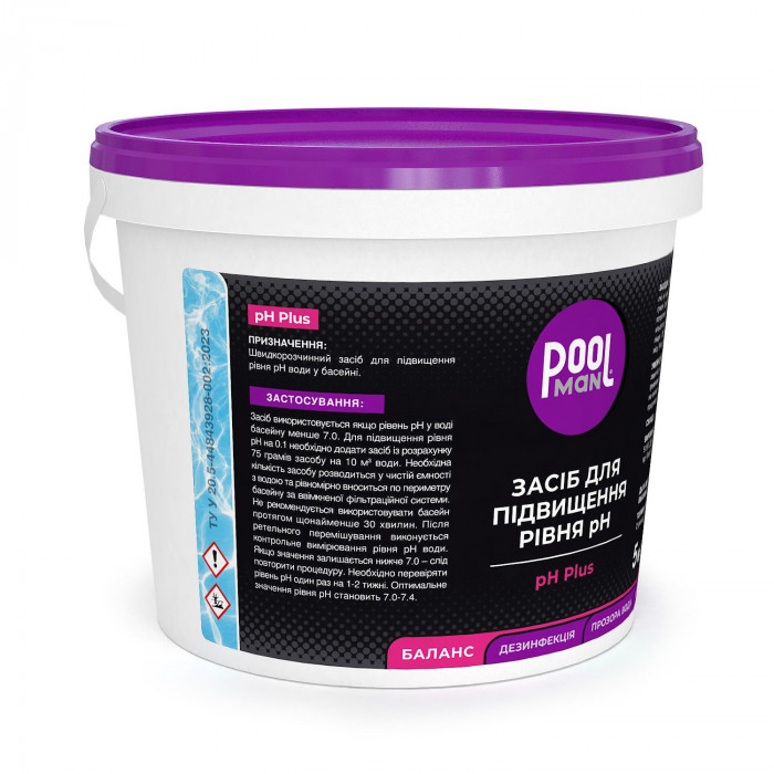 Застосування: Засіб використовується якщо рівень pH у воді басейну менше 7.0. Для підвищення рівня рН на 0.1 необхідно додати засіб із розрахунку 75 грамів засобу на 10 м3 води. Необхідна кількість засобу розводиться у чистій ємності з водою та рівномірно вноситься по периметру басейну за ввімкненої фільтраційної системи. Не рекомендується використовувати басейн протягом щонайменше 30 хвилин. Після ретельного перемішування виконується контрольне вимірювання рівня рН води. Якщо значення залишається нижче 7.0 – слід повторити процедуру. Необхідно перевіряти рівень рН один раз на 1-2 тижні. Оптимальне значення рівня рН становить 7.0-7.4.