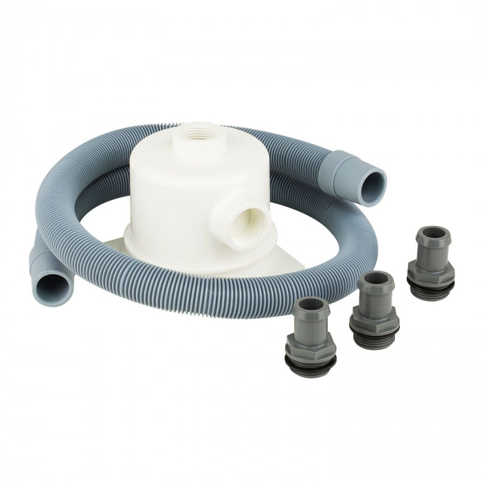Сполучна коробка для прожектора в комплекті з гофрованим шлангом (1 м) та адаптерами.