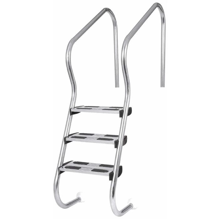 Сходи Flexinox Standard з поручнями — чудовий варіант для повністю заглиблених басейнів із широким бортом. Оснащена трьома сходинками із протиковзкими пластиковими накладками. Завдяки гумовим заглушкам, елементи кріплення не порушують гідроізоляцію чаші басейну. Виконана з нержавіючої сталі AISI 304/316, стійкої до корозії, впливу ультрафіолету та хімічних реагентів. Максимальне навантаження на сходи 150 кг. Кріпильні елементи постачаються в комплекті.