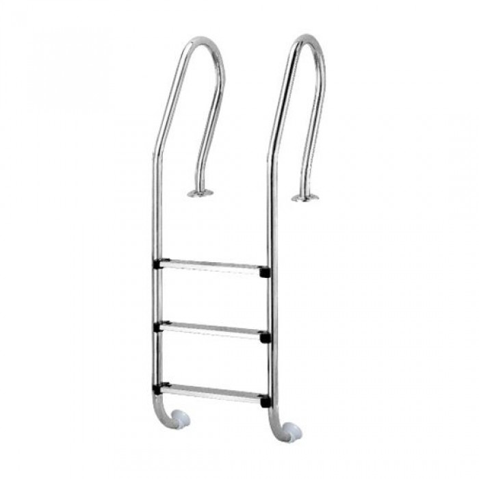 Сходи Emaux NSF415-SR призначені для зручного та безпечного спуску в басейн. Поручні та сходи виготовлені з полірованої нержавіючої сталі марки AISI-304. Поручні кріпляться до борту за допомогою пластикових склянок (анкерів). Нижня частина сходів упирається у стіну басейну прогумованої заглушкою. Щаблі кріпляться до поручнів за допомогою болтів. Сходи призначені для заглиблених басейнів. У комплекті поставляються елементи кріплення.