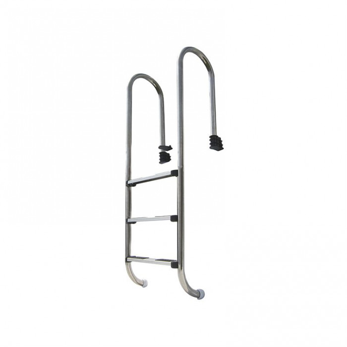 Сходи Emaux NMU515-SR призначені для зручного та безпечного спуску в басейн. Поручні та сходи виготовлені з полірованої нержавіючої сталі марки AISI-304. Поручні кріпляться до борту за допомогою пластикових склянок (анкерів). Нижня частина сходів упирається у стіну басейну прогумованої заглушкою. Щаблі кріпляться до поручнів за допомогою болтів. Сходи призначені для повністю заглиблених басейнів з вузьким бортом. У комплекті поставляються елементи кріплення.