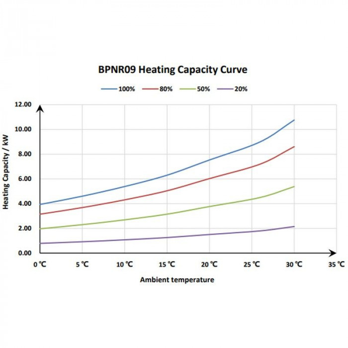 Показники роботи в режимі обігріву при t° навколишнього середовища 15℃, t° нагрітої води 26℃: