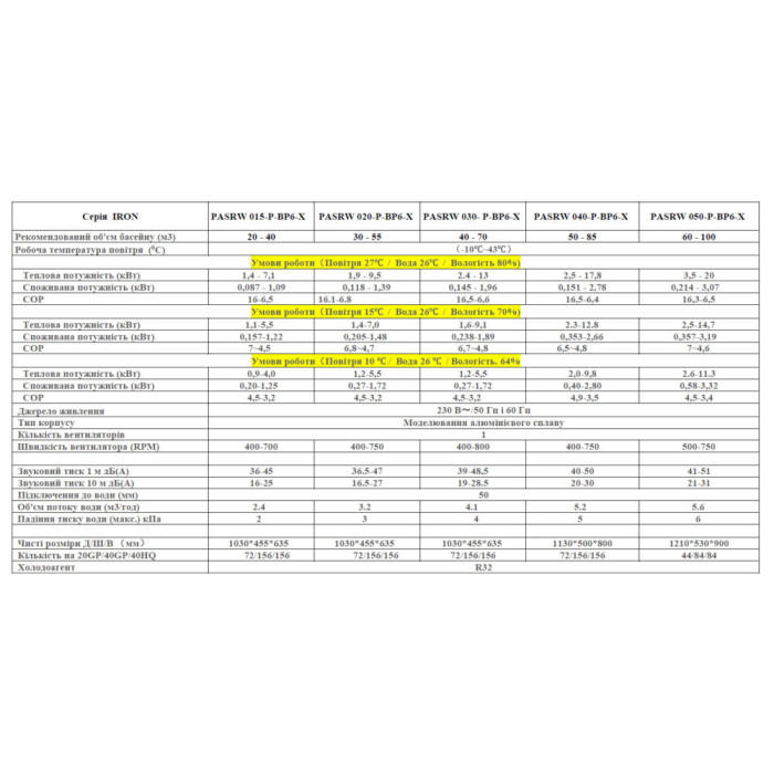 Тепловий насос IRON 7.1 кВт, 230В, 20-40м3, інвертер, з охолодженням, WI-FI