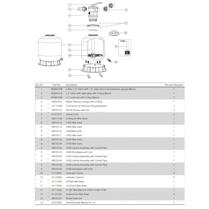 Фільтр EMAUX V900 для механічного очищення води у приватних плавальних та SPA басейнах об’ємом до 125 000 л. Ємність укріплена обмоткою зі скловолокна та оброблена спеціальним просоченням. Комплектується клапаном на 6 режимів та універсальними сполучними муфтами на 2′ (63 мм). Модель збільшеної потужності.